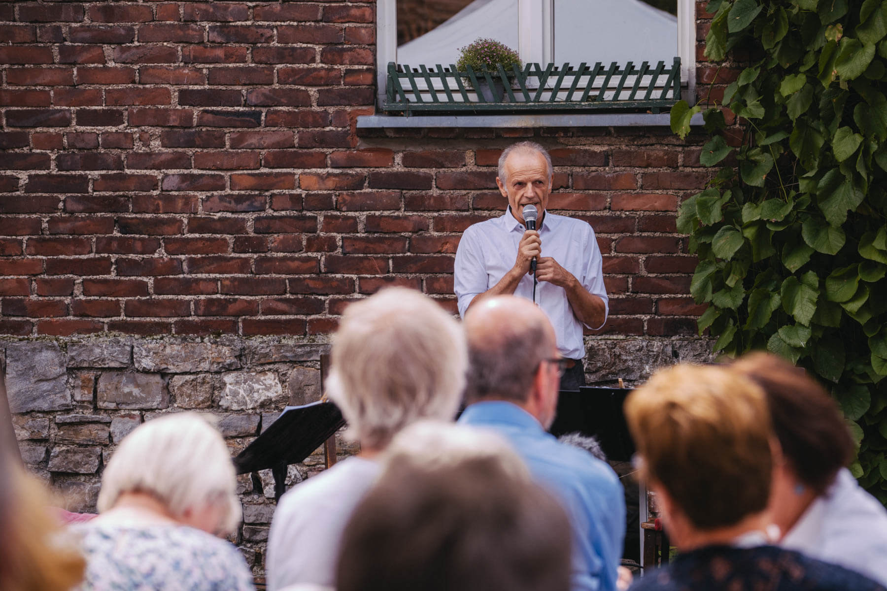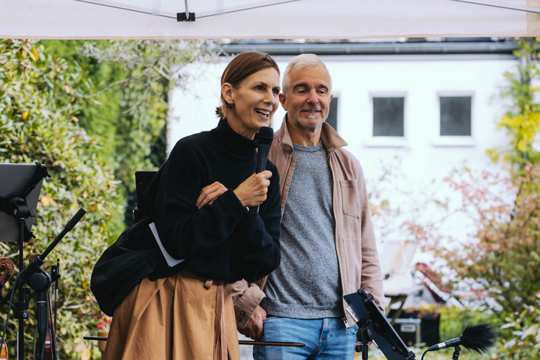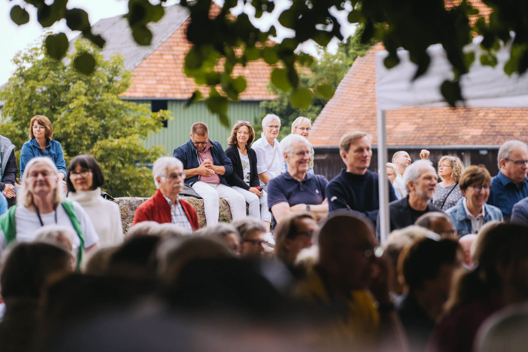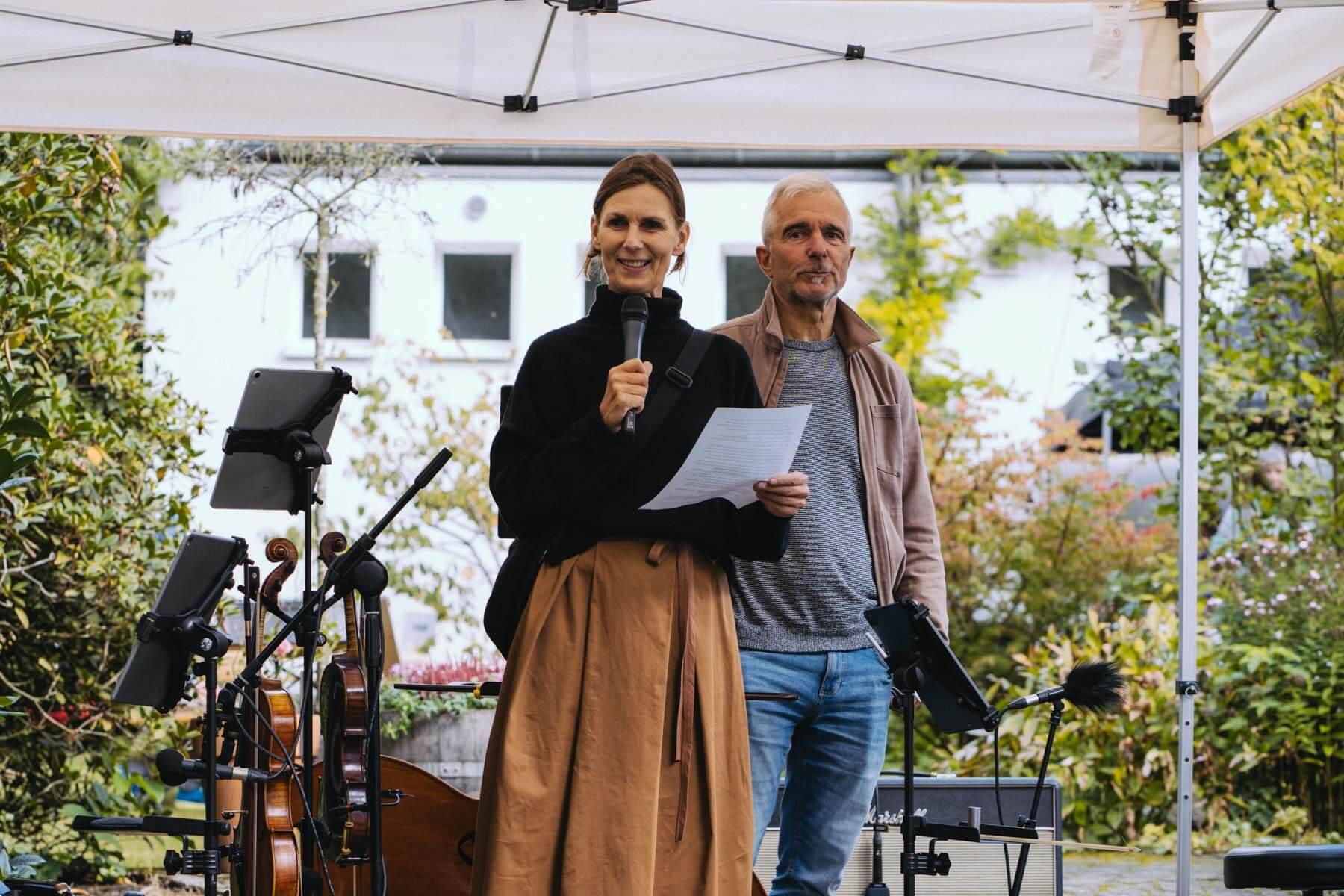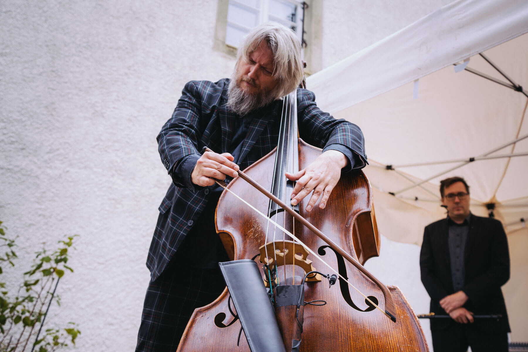 Die Kooperation mit dem Klangraum Festival Köln entstand letztes Jahr, als fünf Musiker:innen, die dort spielten, spontan für die Band UWAGA einsprangen, die aufgrund von Krankheit kurzfristig absagen mussten. Und mit kurzfristig, meinen wir kurzfristig. Samstag früh telefonierte Matinee-Gründer Benedik ter Braak sich durch das inoffizielle Telefonbuch von Musikerkolleg:innen, bis er bei Frederick Winterson landete, welcher am nächsten Morgen mit einem spontan zusammengestellten Ensemble anrückte. In diesem Jahr lief es etwas geplanter ab und nachdem die Musizierenden am 6. September abends in Köln konzertierten, kamen sie am darauffolgenden Morgen (fast) ausgeschlafen auf dem Hof von Familie Becker-Nupe an, wo sich wiederum 250 Gäste auf ein Konzert im Grünen freuten. Neben einem wunderbaren Arrangement von „Summertime“ von Benedikt ter Braak, spielte das Ensemble Schuberts Forellen Quintett und einen Satz aus Beethovens Streichquartett. Glücklicherweise alles, ohne vom hauseigenen Esel unterbrochen zu werden.