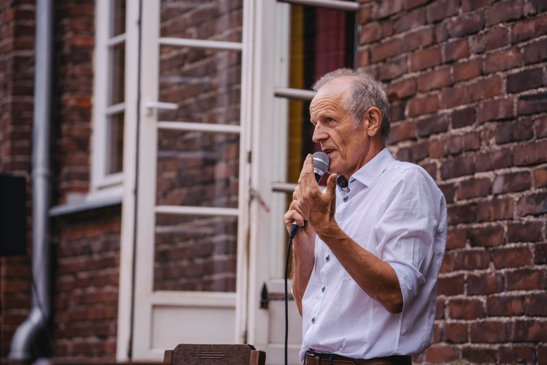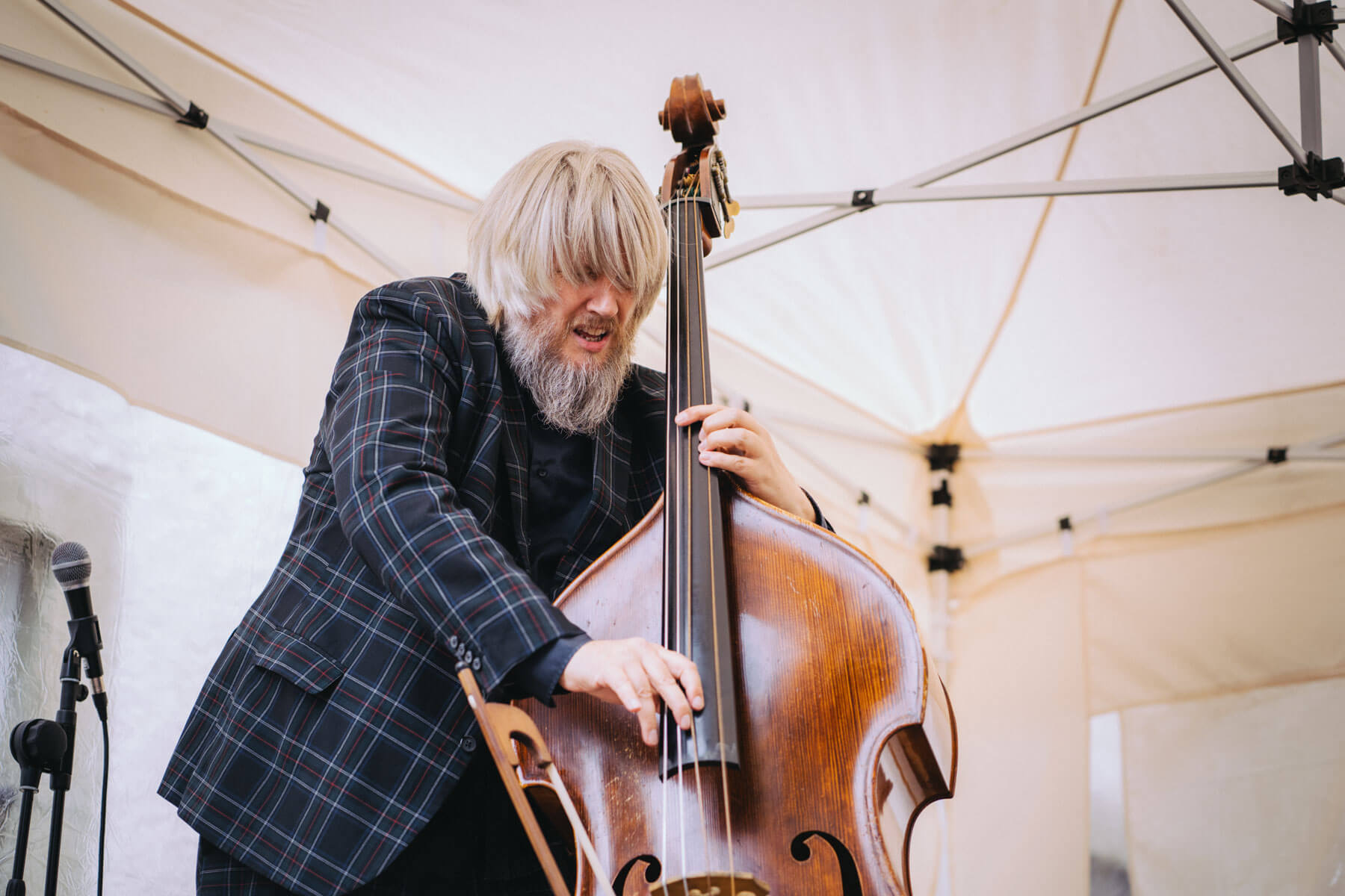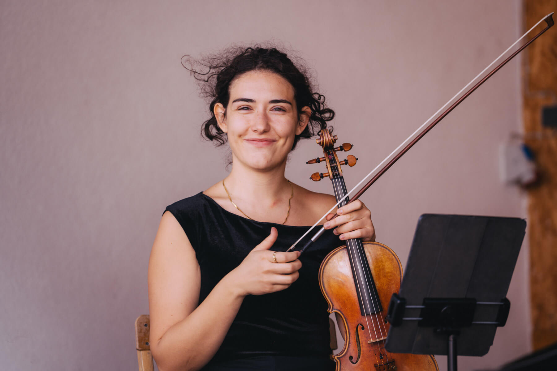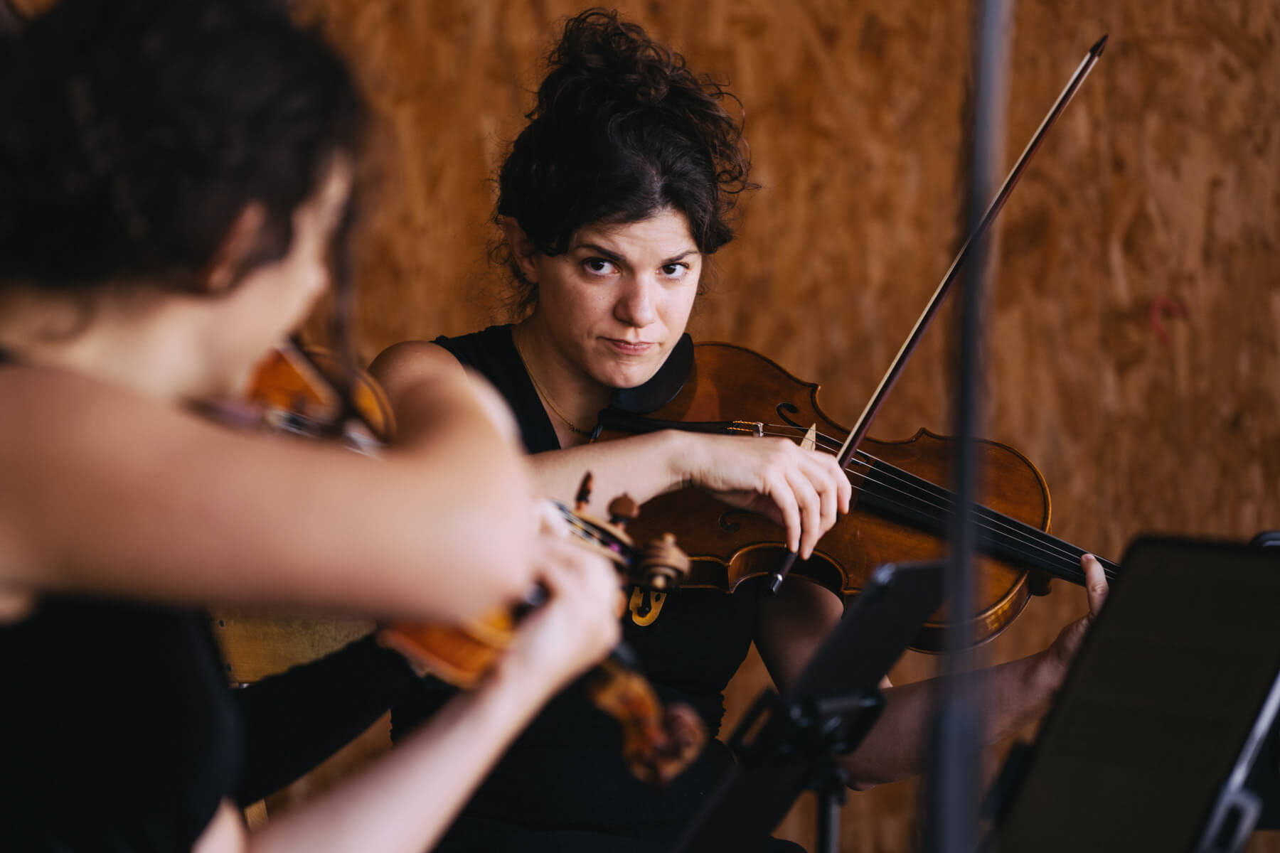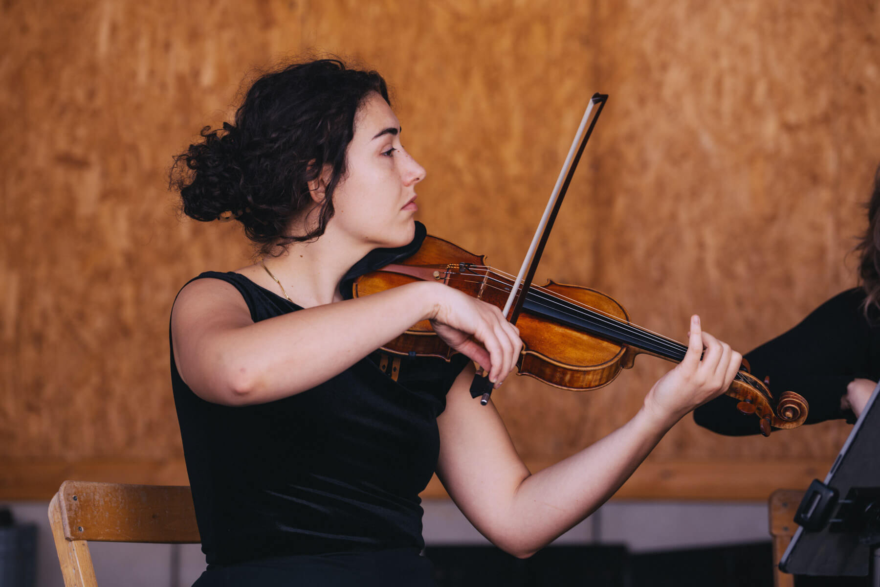 Die Kooperation mit dem Klangraum Festival Köln entstand letztes Jahr, als fünf Musiker:innen, die dort spielten, spontan für die Band UWAGA einsprangen, die aufgrund von Krankheit kurzfristig absagen mussten. Und mit kurzfristig, meinen wir kurzfristig. Samstag früh telefonierte Matinee-Gründer Benedik ter Braak sich durch das inoffizielle Telefonbuch von Musikerkolleg:innen, bis er bei Frederick Winterson landete, welcher am nächsten Morgen mit einem spontan zusammengestellten Ensemble anrückte. In diesem Jahr lief es etwas geplanter ab und nachdem die Musizierenden am 6. September abends in Köln konzertierten, kamen sie am darauffolgenden Morgen (fast) ausgeschlafen auf dem Hof von Familie Becker-Nupe an, wo sich wiederum 250 Gäste auf ein Konzert im Grünen freuten. Neben einem wunderbaren Arrangement von „Summertime“ von Benedikt ter Braak, spielte das Ensemble Schuberts Forellen Quintett und einen Satz aus Beethovens Streichquartett. Glücklicherweise alles, ohne vom hauseigenen Esel unterbrochen zu werden.