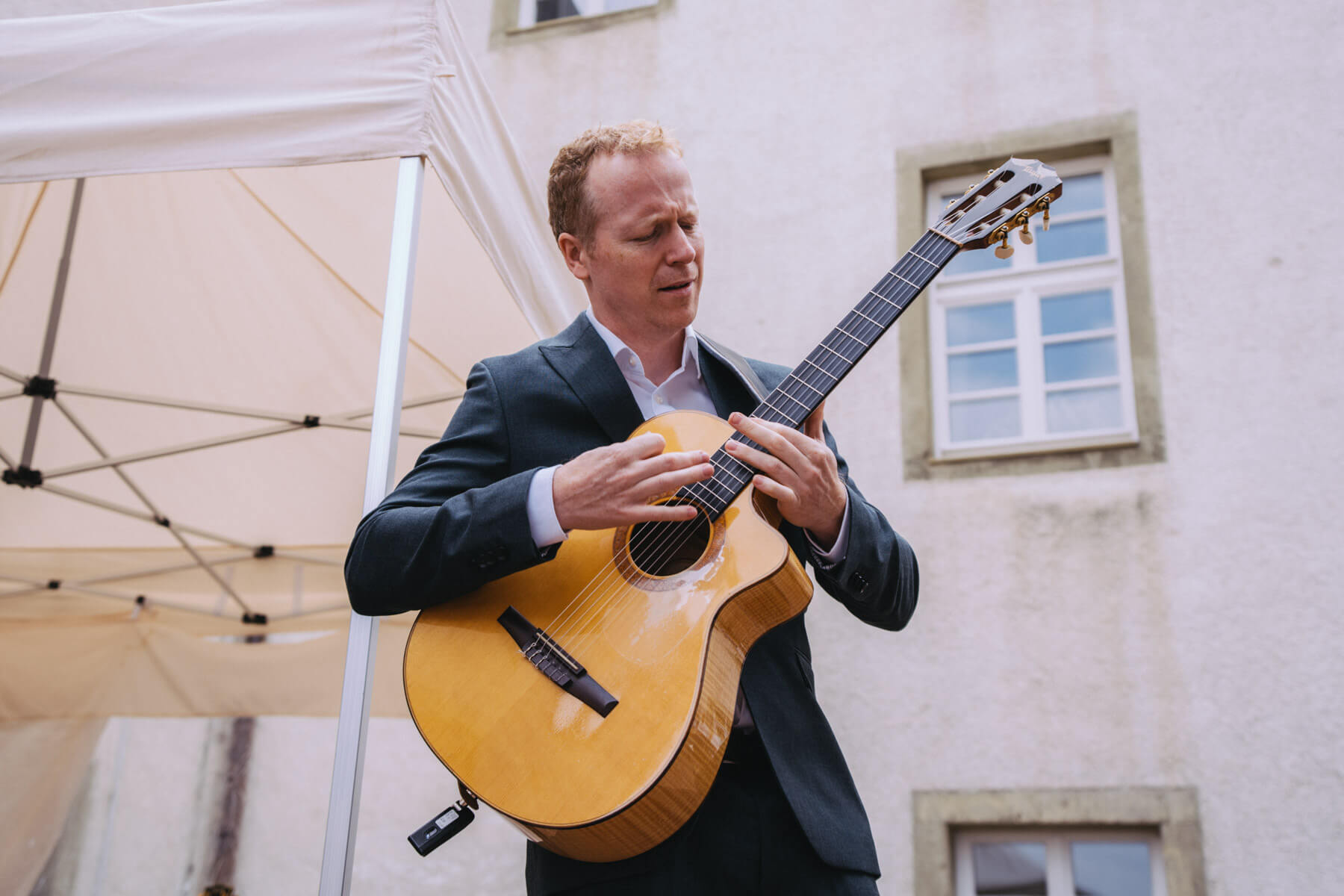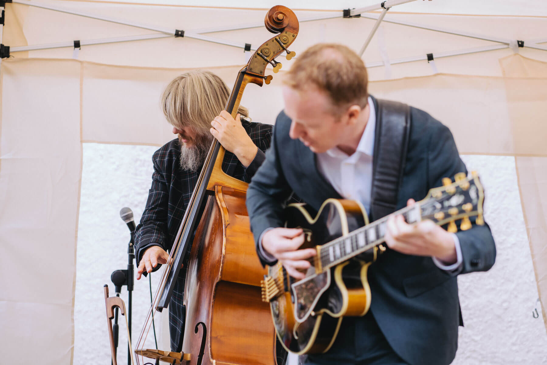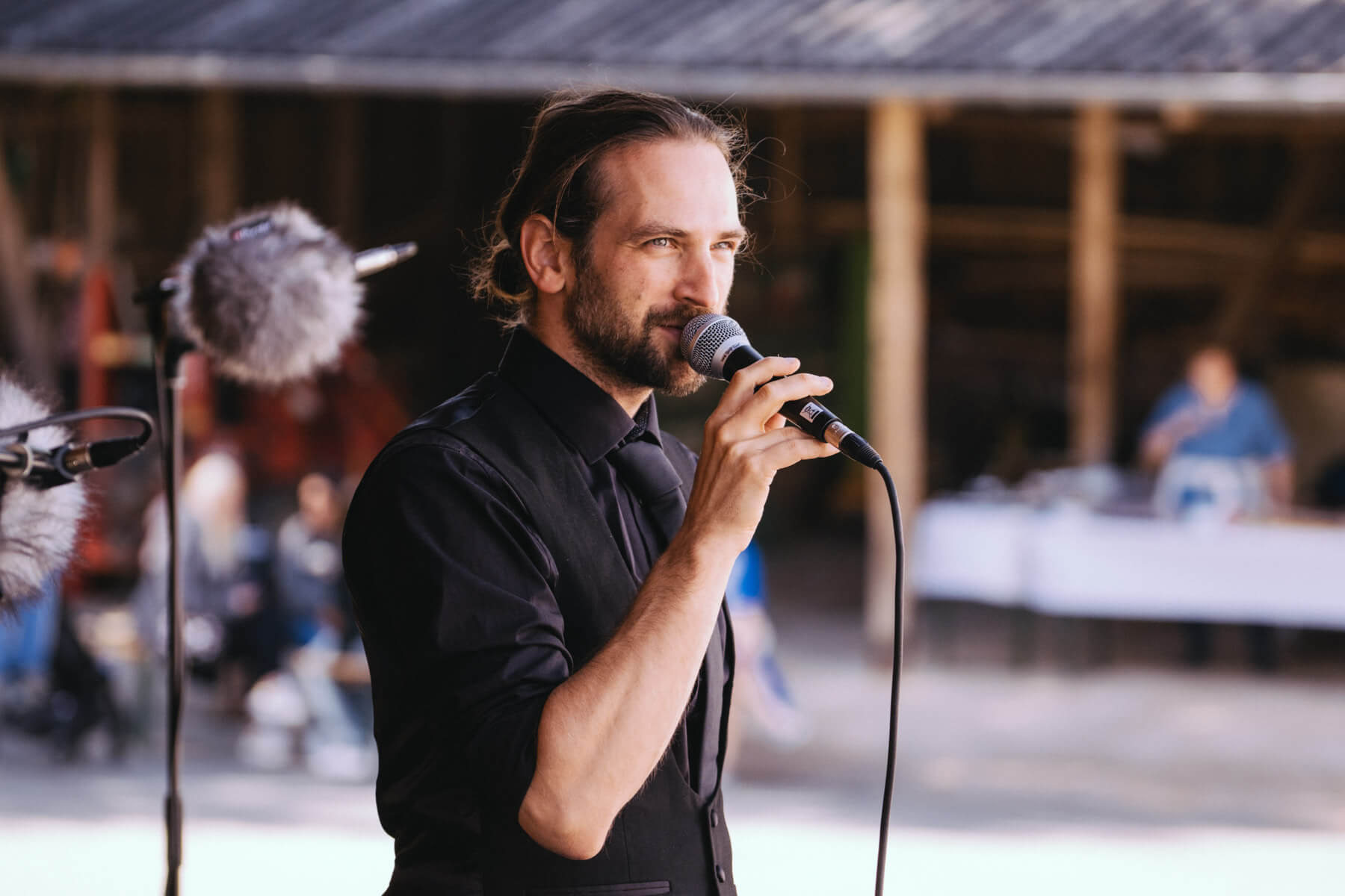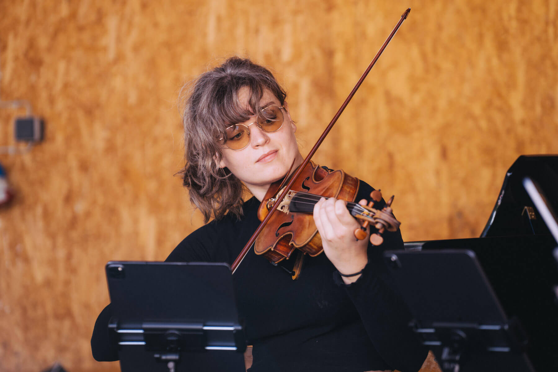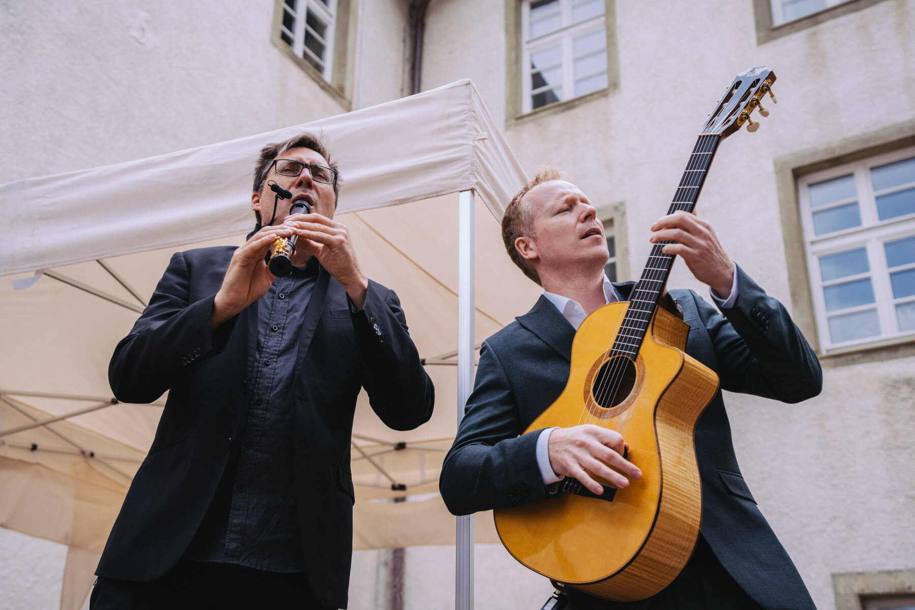 Die Kooperation mit dem Klangraum Festival Köln entstand letztes Jahr, als fünf Musiker:innen, die dort spielten, spontan für die Band UWAGA einsprangen, die aufgrund von Krankheit kurzfristig absagen mussten. Und mit kurzfristig, meinen wir kurzfristig. Samstag früh telefonierte Matinee-Gründer Benedik ter Braak sich durch das inoffizielle Telefonbuch von Musikerkolleg:innen, bis er bei Frederick Winterson landete, welcher am nächsten Morgen mit einem spontan zusammengestellten Ensemble anrückte. In diesem Jahr lief es etwas geplanter ab und nachdem die Musizierenden am 6. September abends in Köln konzertierten, kamen sie am darauffolgenden Morgen (fast) ausgeschlafen auf dem Hof von Familie Becker-Nupe an, wo sich wiederum 250 Gäste auf ein Konzert im Grünen freuten. Neben einem wunderbaren Arrangement von „Summertime“ von Benedikt ter Braak, spielte das Ensemble Schuberts Forellen Quintett und einen Satz aus Beethovens Streichquartett. Glücklicherweise alles, ohne vom hauseigenen Esel unterbrochen zu werden.