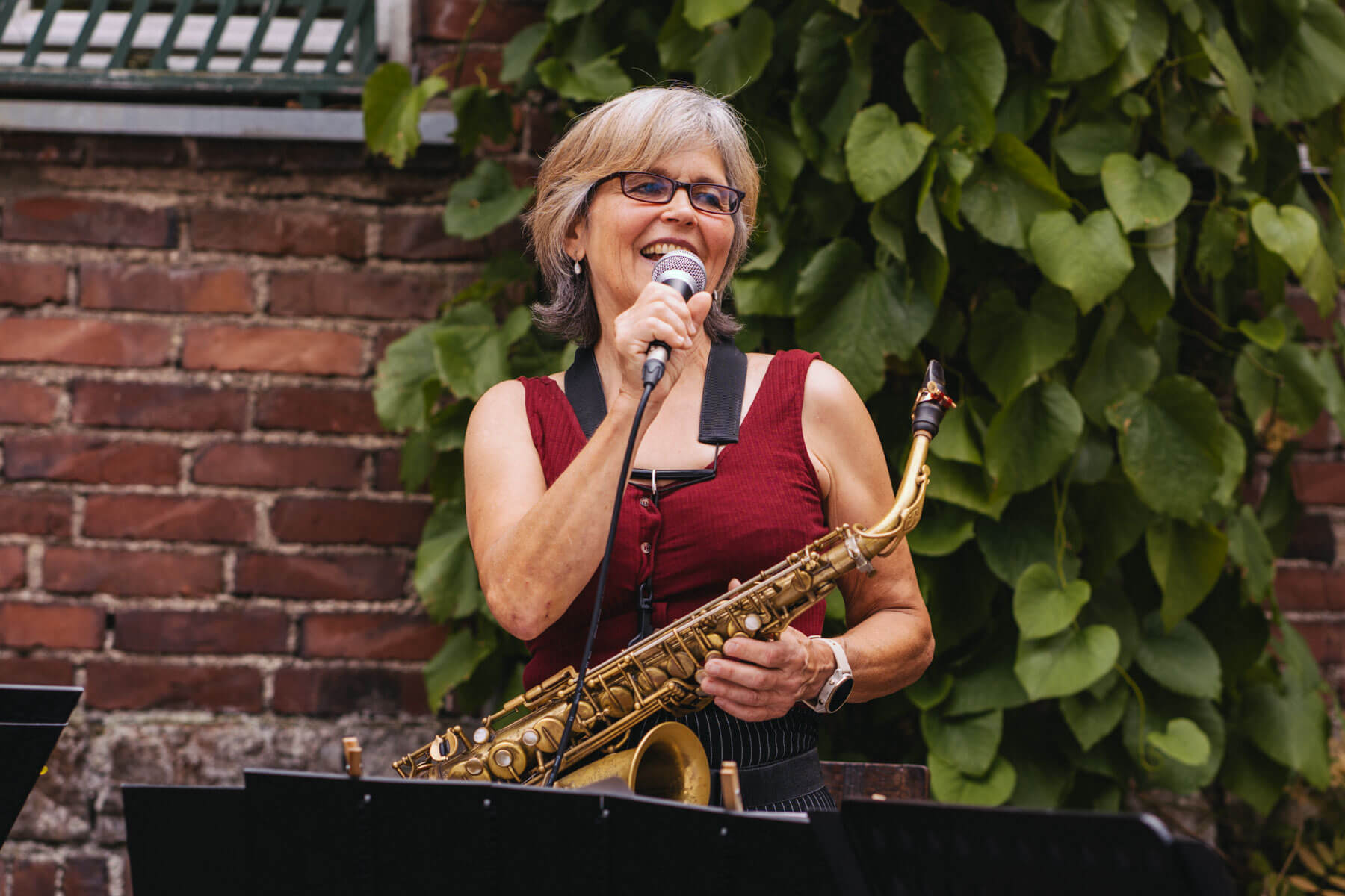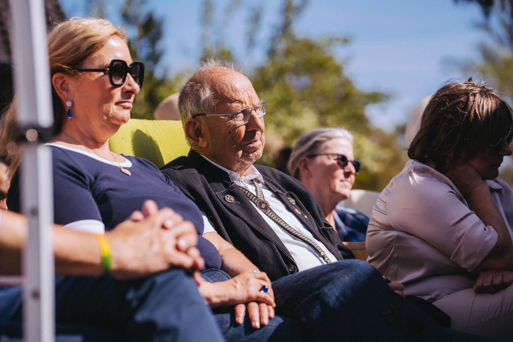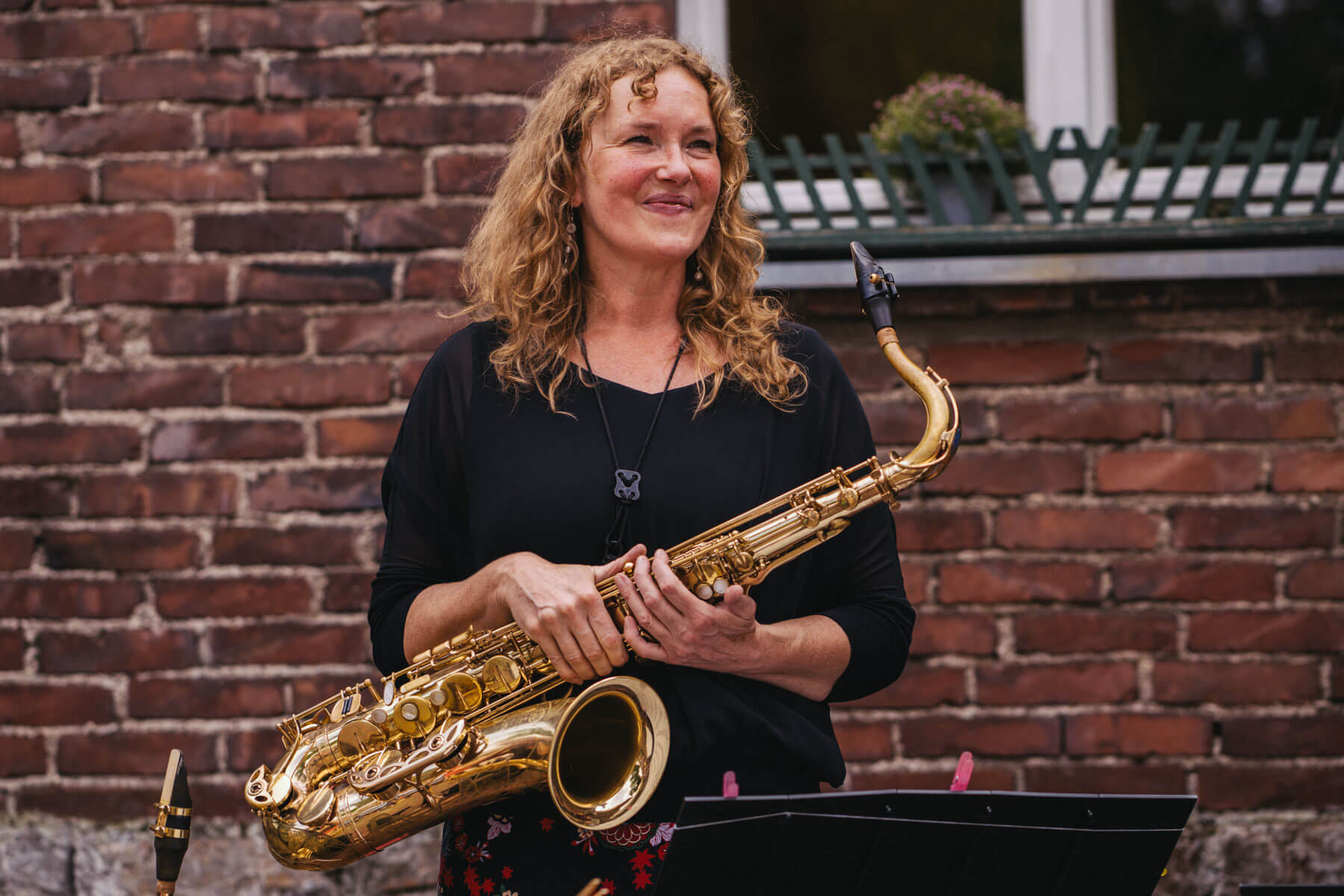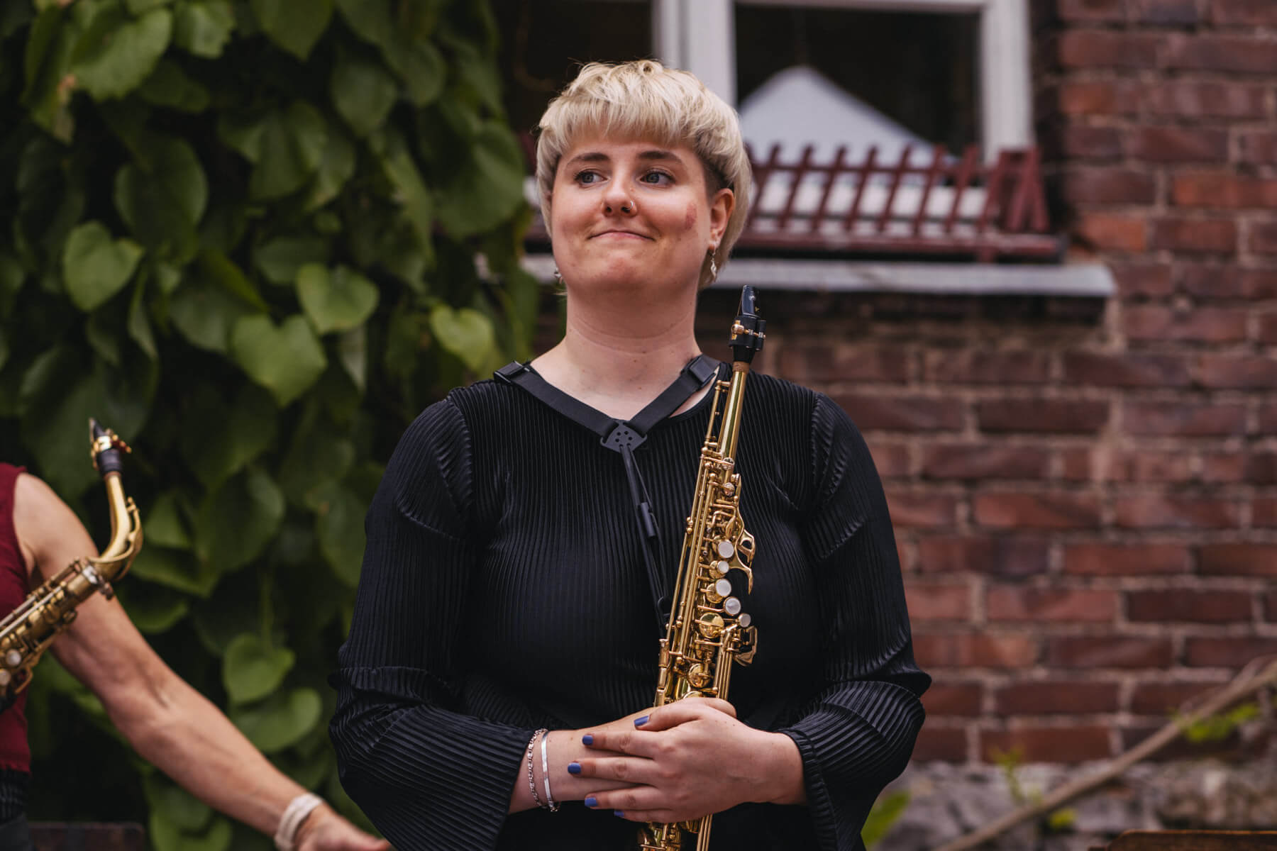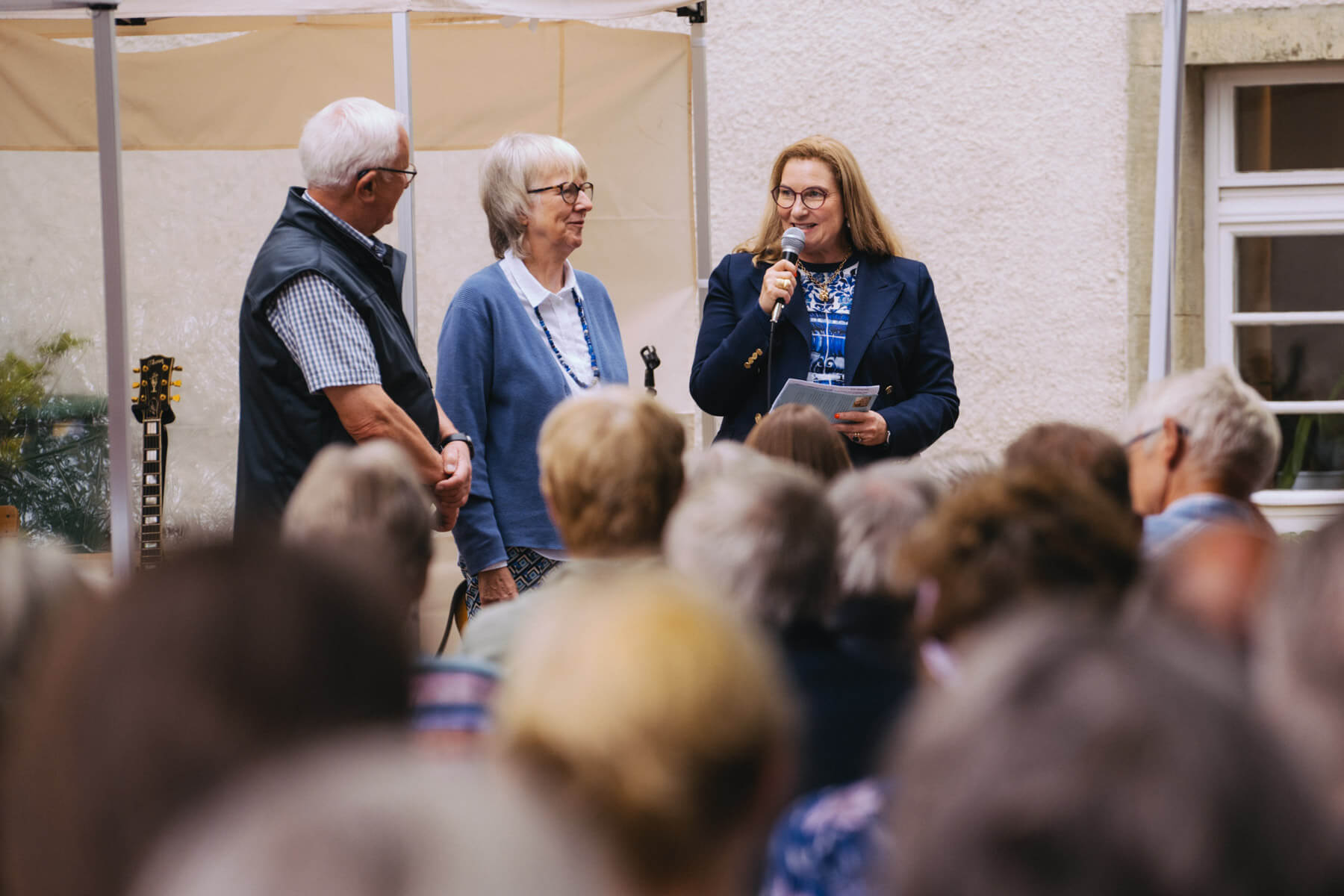 Tatsächlich hatten wir erst einmal ein reines Bläser-Ensemble zu Gast (2022, das Solano Sextett der Duisburger Philharmoniker) und dementsprechend freuten wir uns besonders auf das Lilith Saxophon Quartett, welches das zweite Konzert diesen Jahres spielte. Vier Musikerinnen vom Feinsten spielten ein buntes Programm von Klassik bis Jazz für rund 250 Besucher:innen. Das Wetter war toll, die Musik erst recht und der Garten von Familie Schulte-Illingheim haute uns alle um: Durch die Deele (ein Wort, das nicht alle von uns kannten 😉 ) kommt man in eine Art Open-Air Auditorium inmitten eines wunderschönen, weitläufigen Gartens – als wäre dieser Garten eigens für uns angelegt worden.